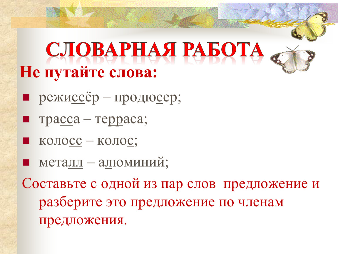 Составьте с одной из пар слов предложение и разберите это предложение по членам предложения.