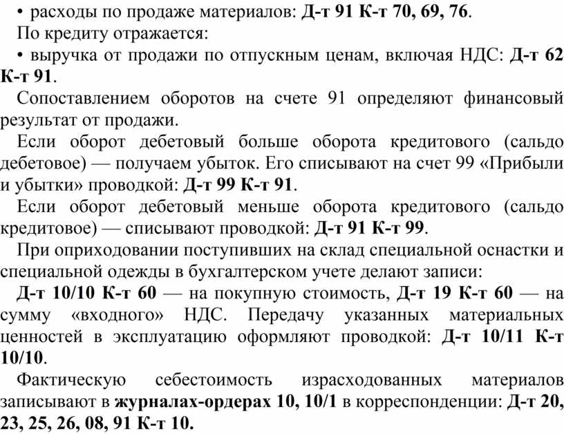 • расходы по продаже материалов: Д-т 91 К-т 70, 69, 76.