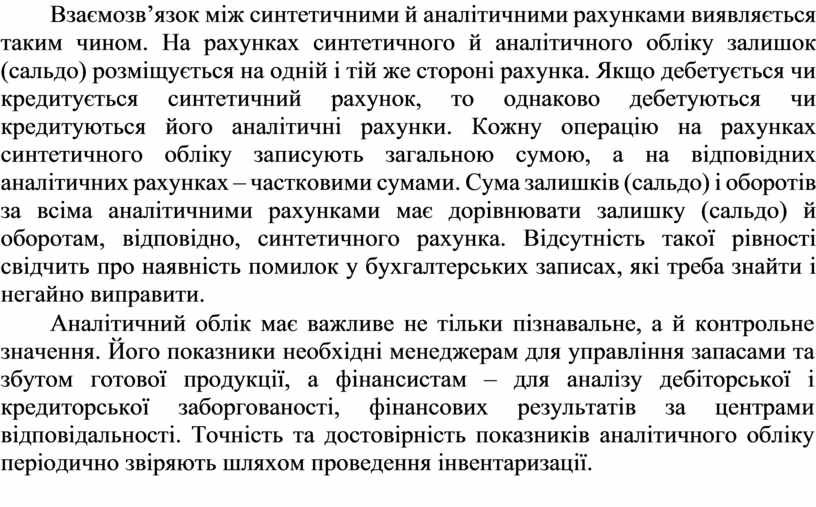Синтетичні й аналітичні рахунки, їх взаємозв’язок