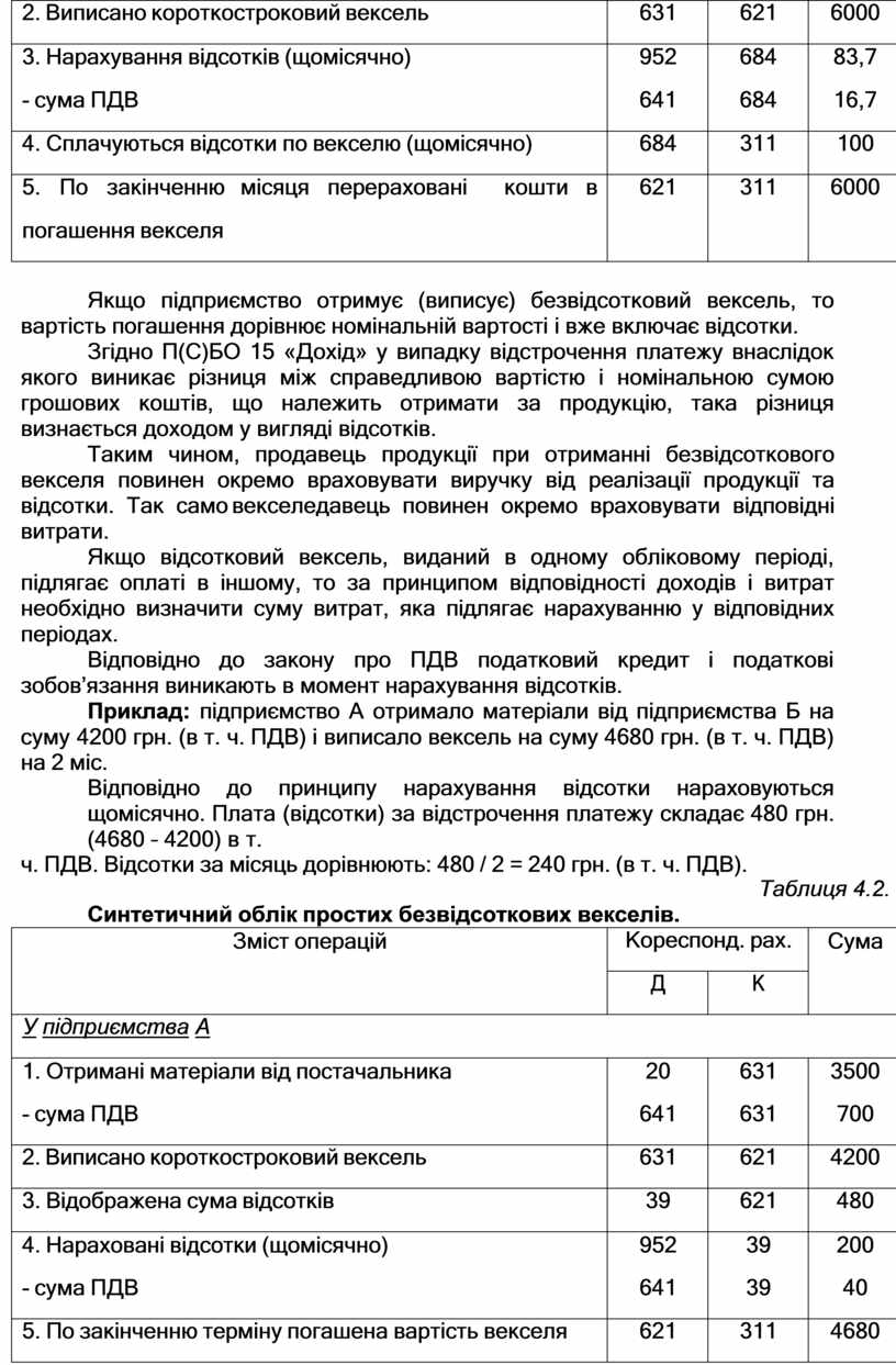 Приклад: підприємство А отримало матеріали від підприємства Б на суму 4200 грн. (в т. ч. ПДВ) і виписало вексель на суму 4680 грн. (в т. ч. ПДВ) на 2 міс.