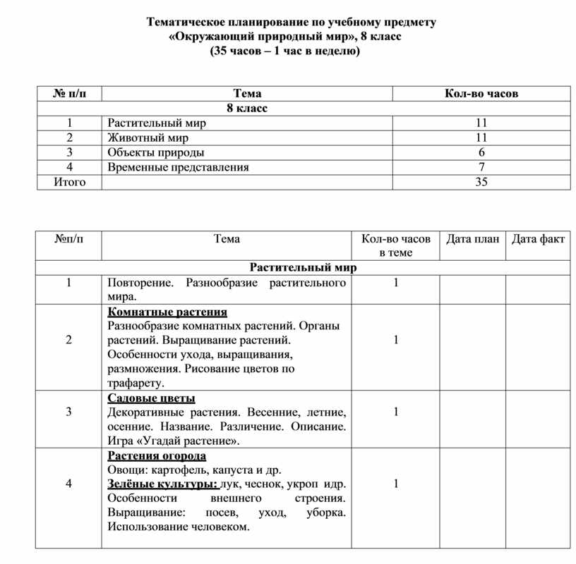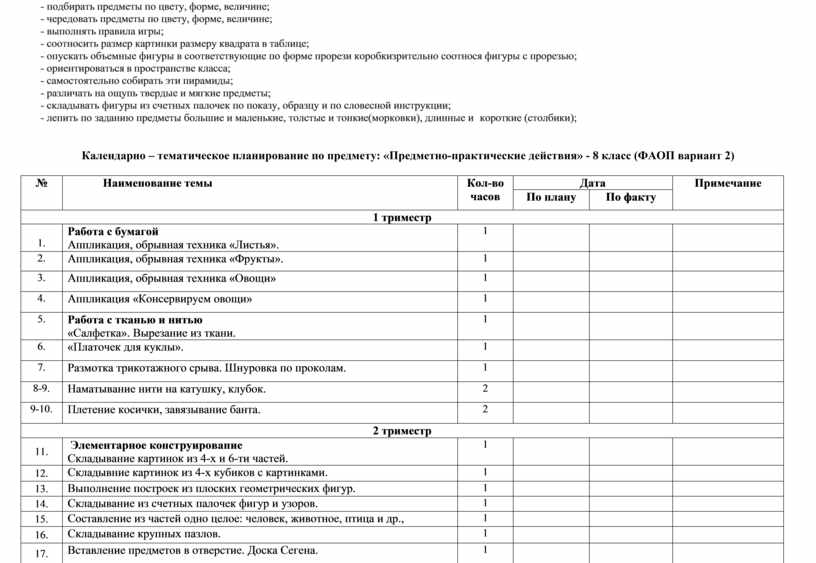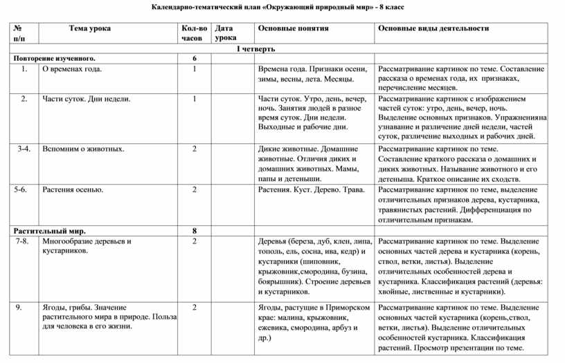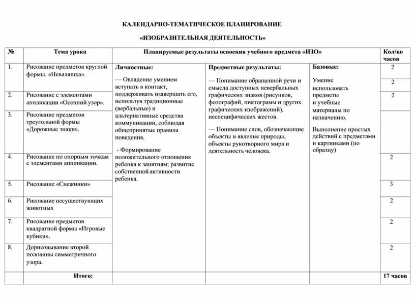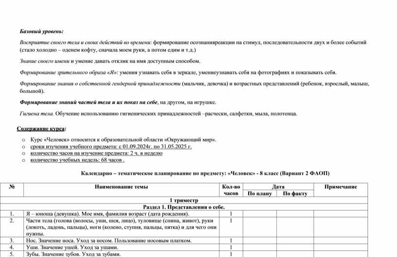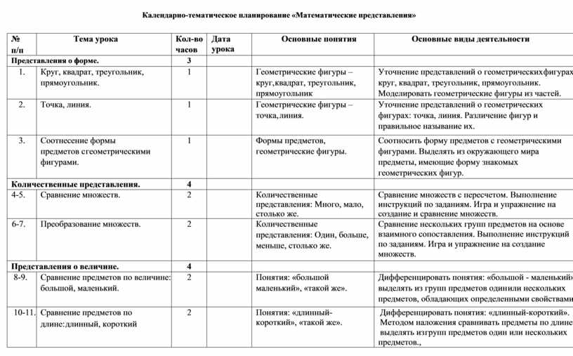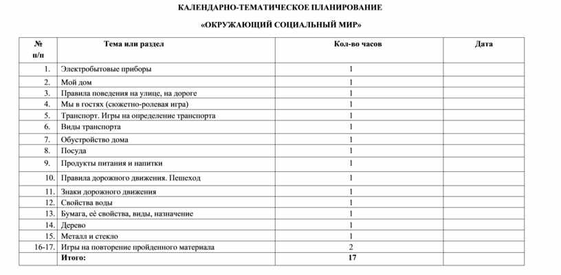 Календарно-тематическое планирование курса «Психологическое сопровождение»