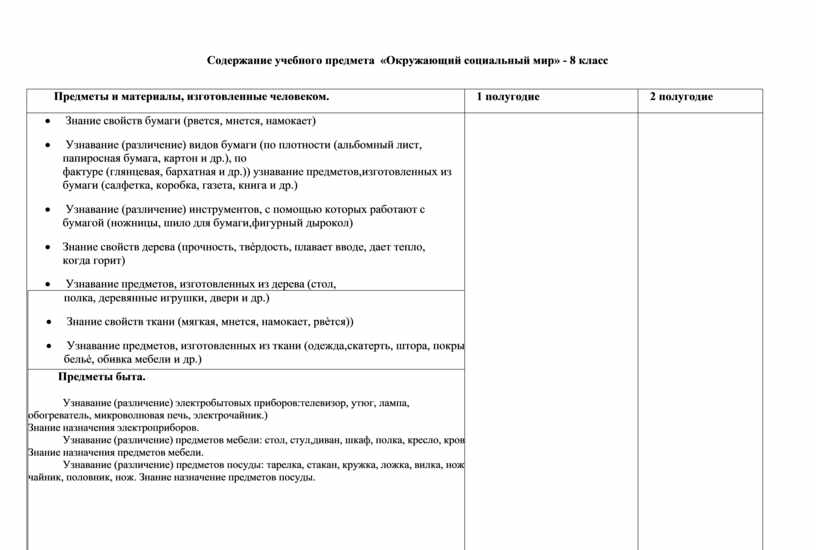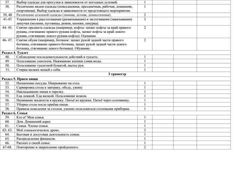 2) Развитие адекватных представлений о окружающем социальном мире, овладение социально-бытовыми умениями, необходимыми в повседневной жизни дома и в школе, умение выполнять посильную домашнюю работу, включаться школьные дела;