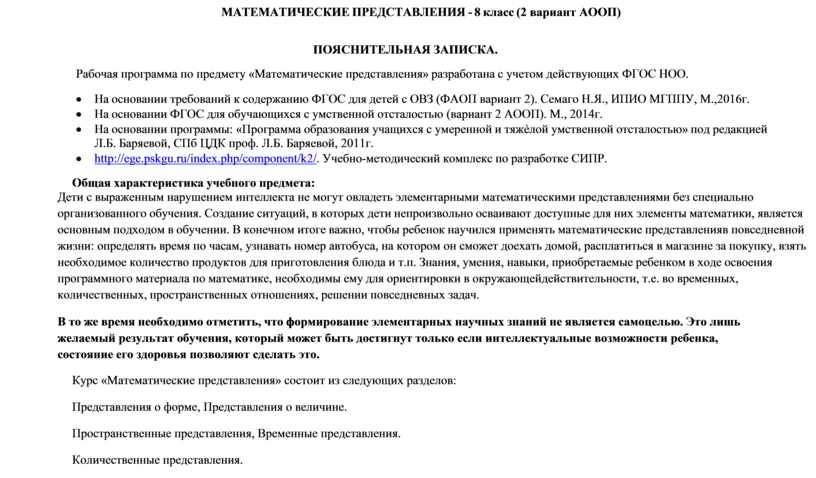 · На основании ФГОС для обучающихся с умственной отсталостью (вариант 2 АООП). М., 2015г.