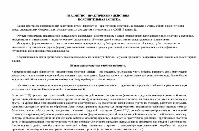 Цель: «Программы обучения учащихся с умственной отсалостью (интеллектуальными нарушениями), осложненной умеренной и тяжелой у. о., имеющих тяжелый речевой дефект», состоит в максимальном включении обучающихся в образовательный процессе, в формировании доступных им видов деятельности (предметно- практической, игровой, элементарной учебной, общения, трудовой).