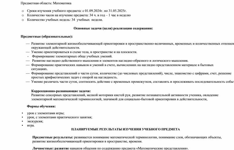по АООП (множественными нарушениями развития II вариант) на 2024-2025 учебный год