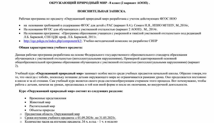 · На основании ФГОС для обучающихся с умственной отсталостью (вариант 2 АООП) . М., 2014г.