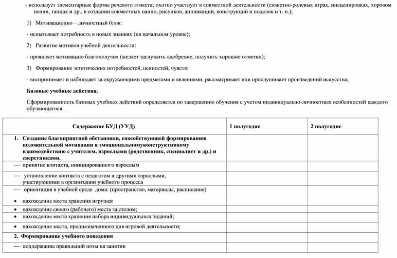 1. Создание благоприятной обстановки, способствующей формированию положительной мотивации и эмоциональному конструктивному взаимодействию с учителем, взрослыми (родственник, специалист и др.) и сверстниками. |
