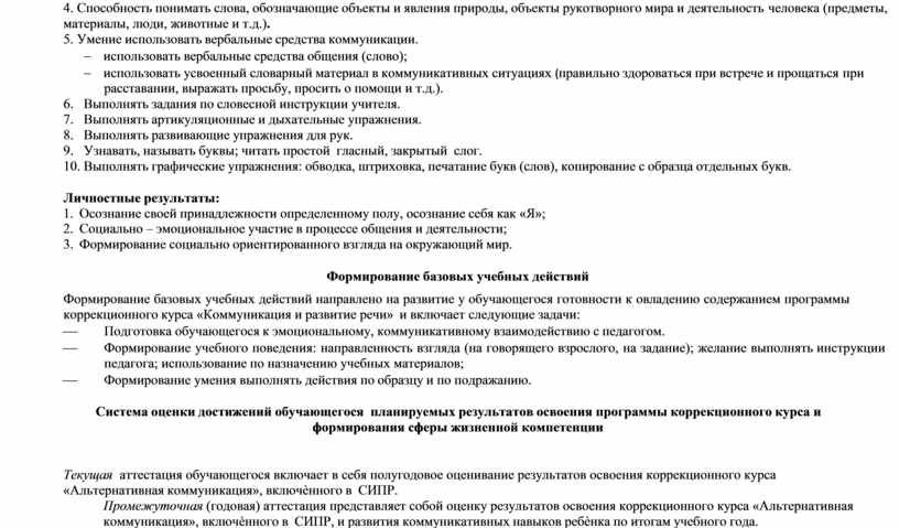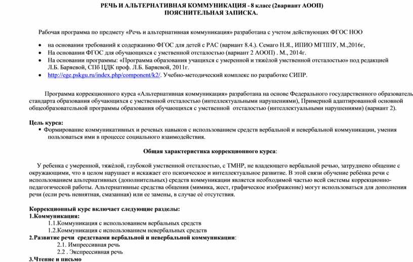 Рабочая программа по предмету «Речь и альтернативная коммуникация» разработана с учетом действующих ФГОС НОО