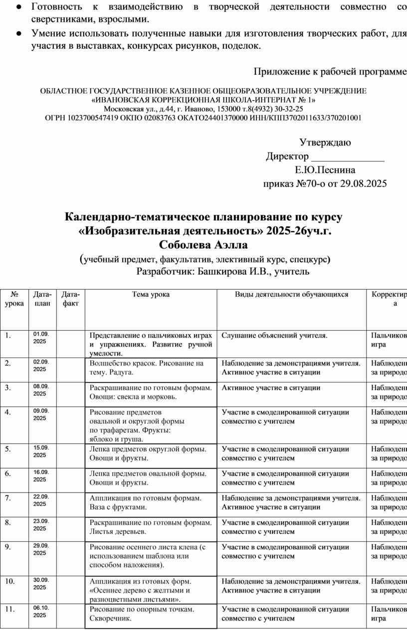 Утверждаю Директор ______________ Е.Ю.Песнина приказ №70-о от 29.08.2025 |