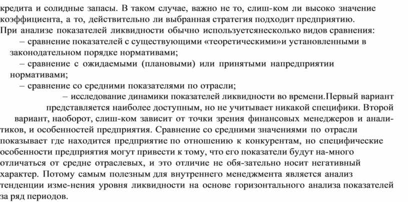 При анализе показателей ликвидности обычно используется несколько видов сравнения: