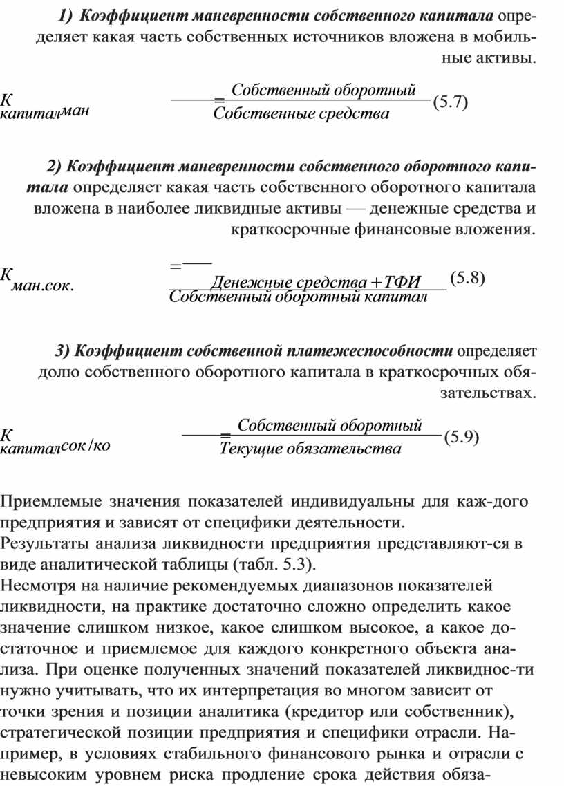 Приемлемые значения показателей индивидуальны для каж- дого предприятия и зависят от специфики деятельности.
