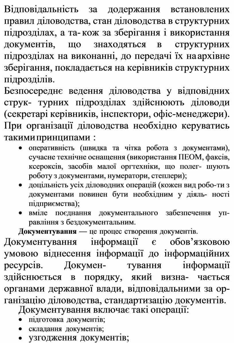 равлінських функцій і включає всі види робіт з оформлення, виготовлення документів, оброблення вхідних та вихідних до- кументів, контролю за їх виконанням.