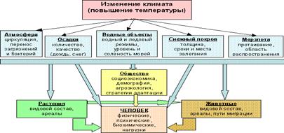 Изучите схему «Изменение климата» и на ее основе составьте рассказ о связи между выбросами углекислого газа (СО2) и гибелью людей и животных, финансовыми потерями