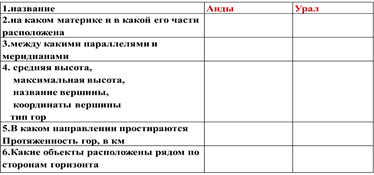 Определите, какие формы рельефа соответствуют указанным в таблице областям контакта литосферных плит. Сделайте и запишите вывод о том, какая зависимость существует между направлением движения литосферных плит и формами рельефа на суше и на дне океана. Вывод: в областях столкновения литосферных плит образуются горы на суше и глубоководные желоба (впадины) на дне океана, а в областях расхождения литосферных плит – подводные горы и поднятия. |