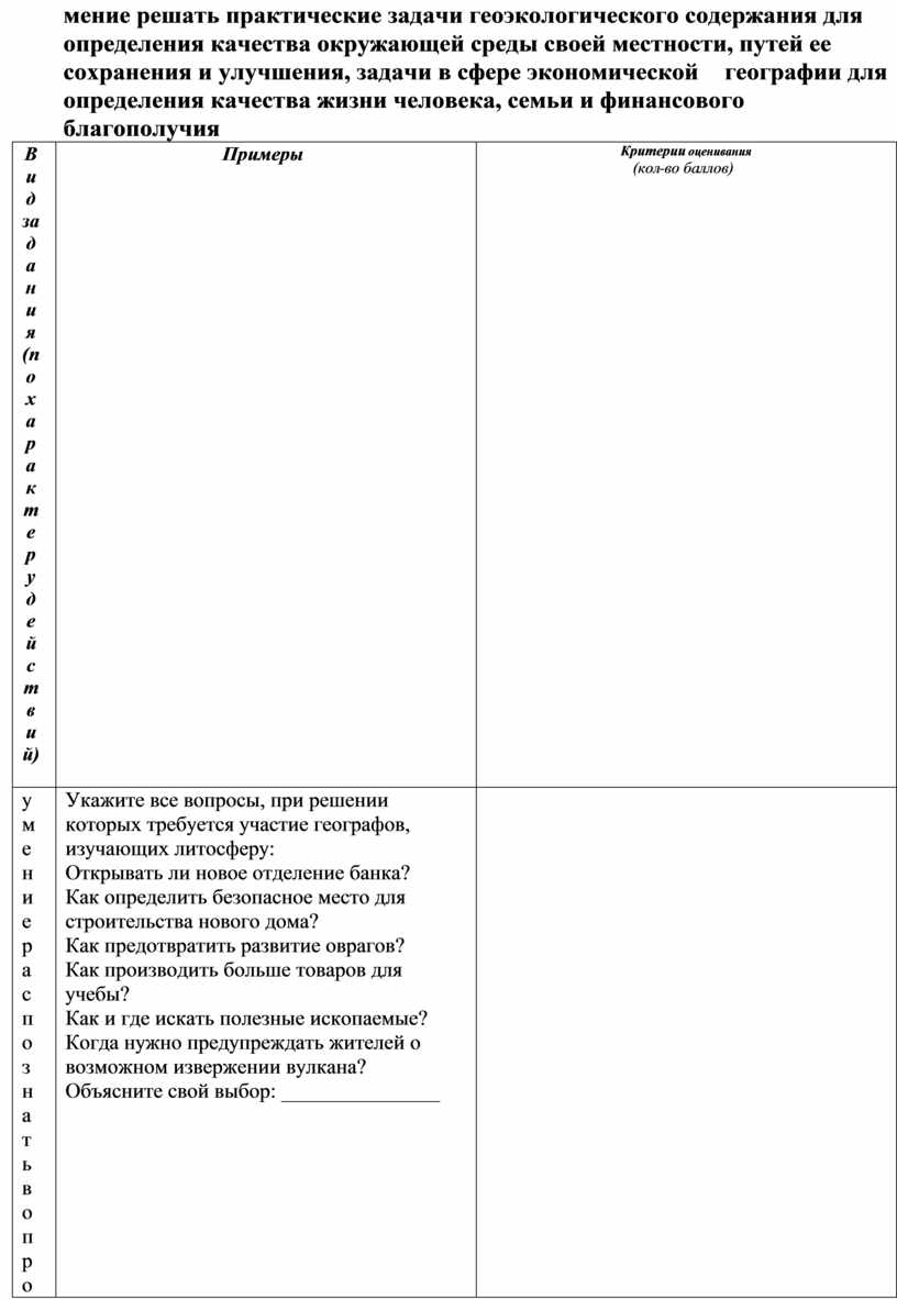 9. Умение решать практические задачи геоэкологического содержания для определения качества окружающей среды своей местности, путей ее сохранения и улучшения, задачи в сфере экономической географии для определения качества жизни человека, семьи и финансового благополучия