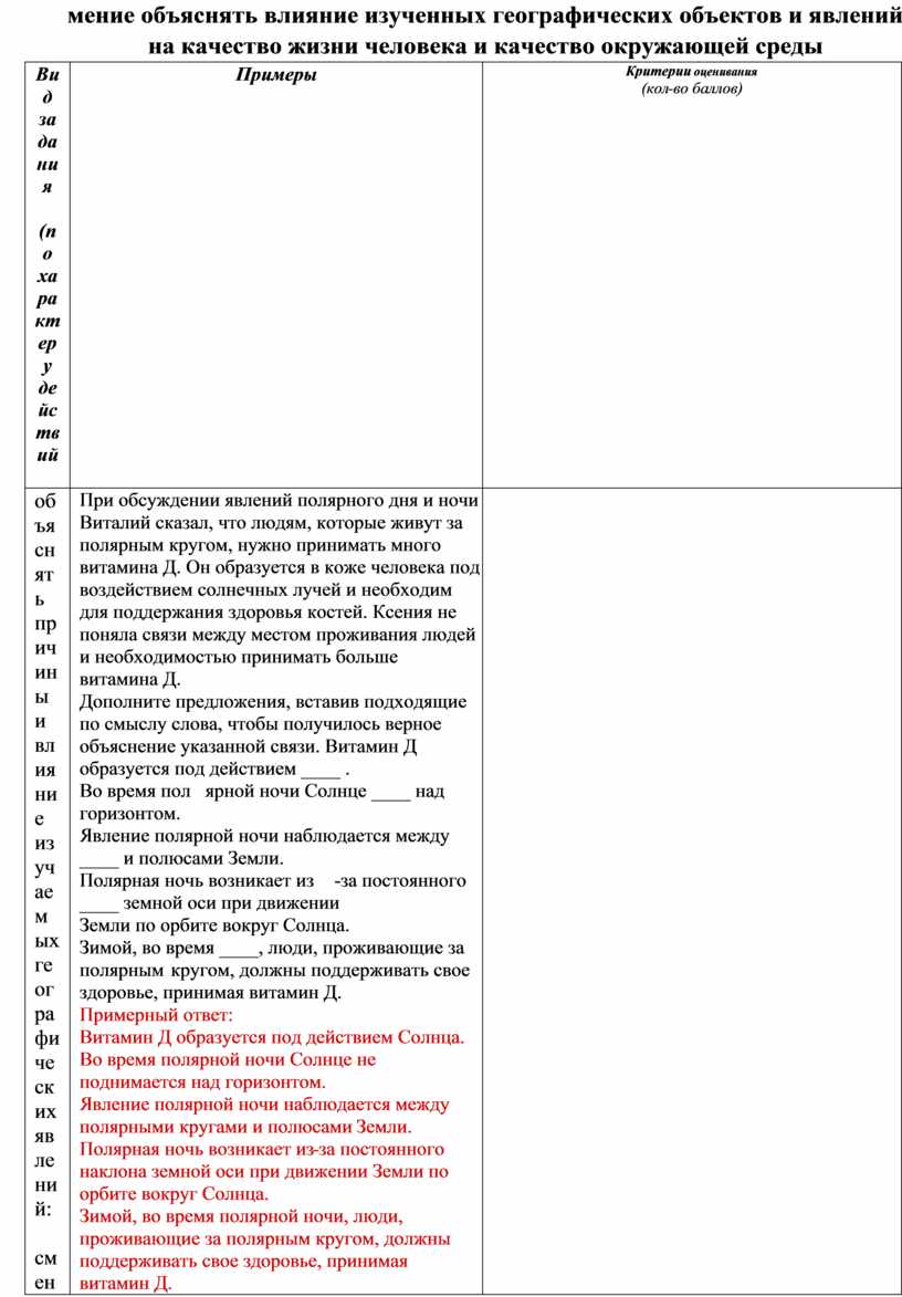 6. Умение объяснять влияние изученных географических объектов и явлений на качество жизни человека и качество окружающей среды