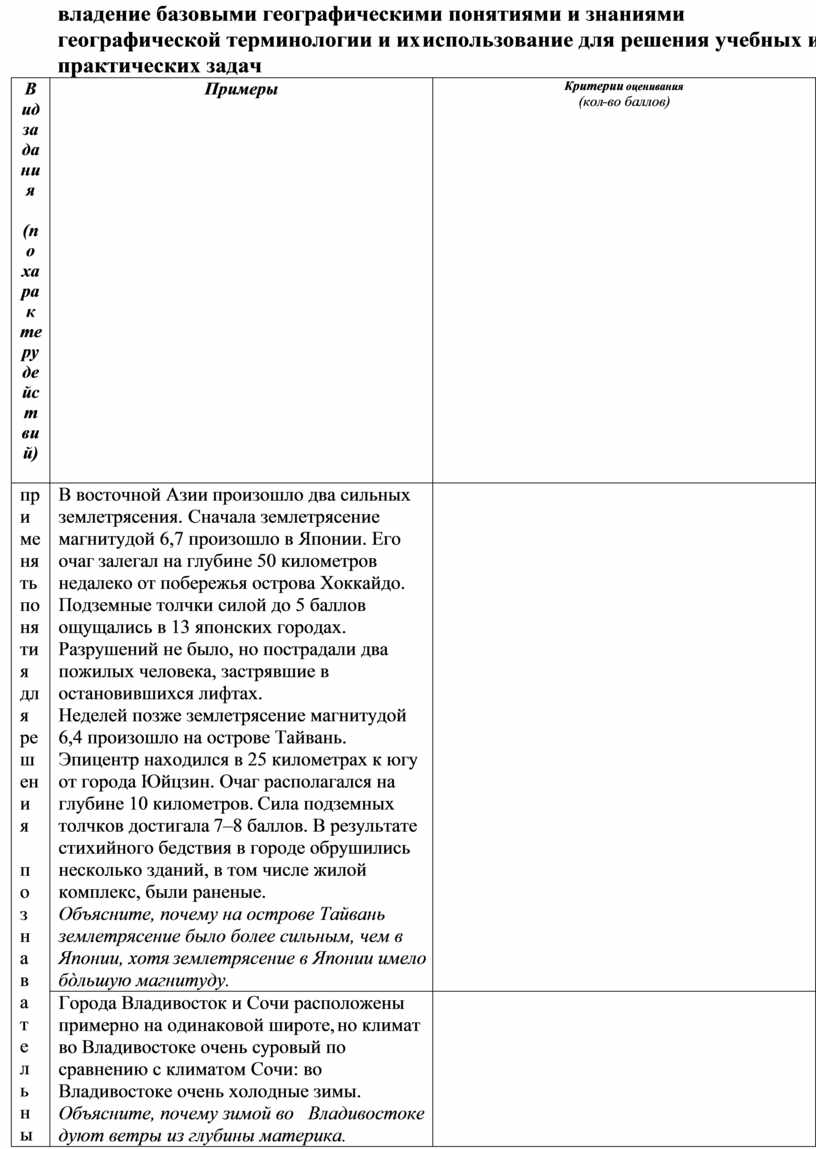 1 балл – дано определение, нет примеров/ есть примеры, нет определения понятия; 0 баллов – задание не выполнено