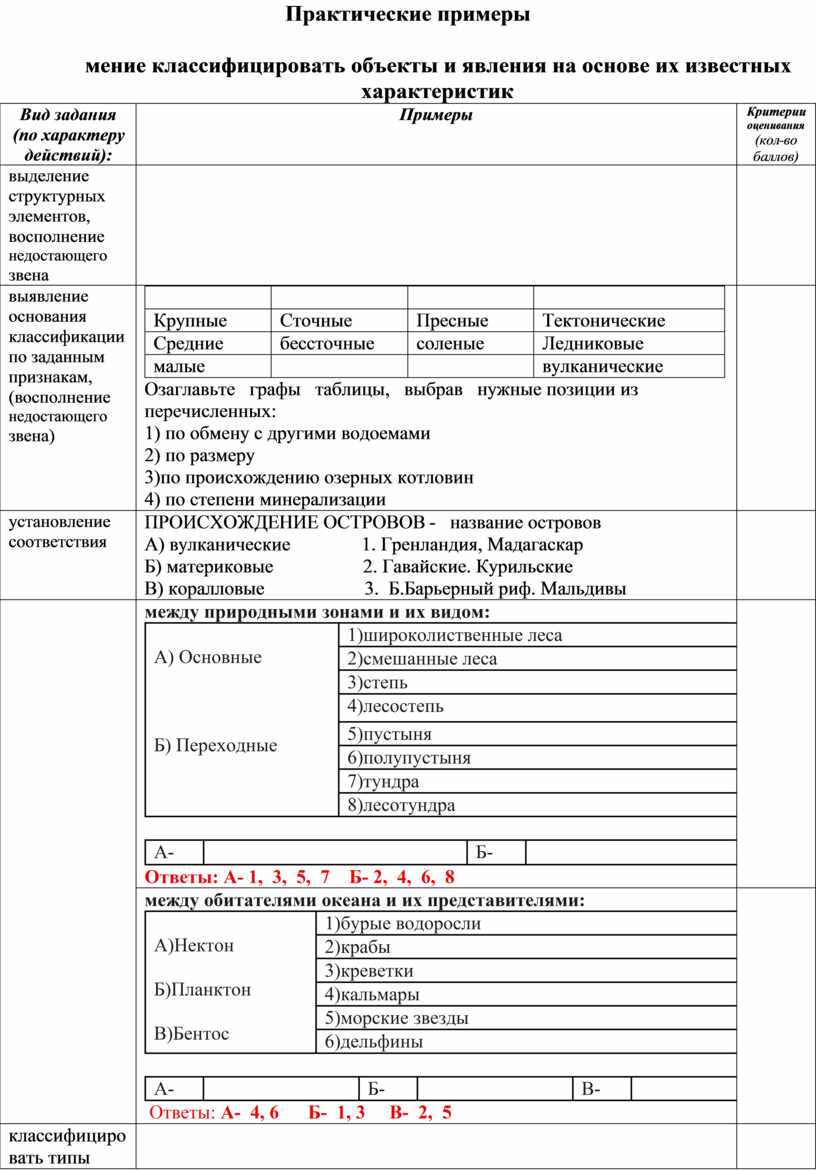 разделять примеры изменений в изученных геосферах на группы по указанному основанию (группировка объектов) |