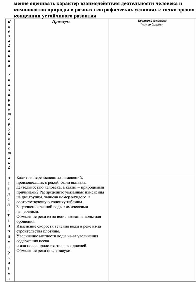 8. Умение оценивать характер взаимодействия деятельности человека и компонентов природы в разных географических условиях с точки зрения концепции устойчивого развития