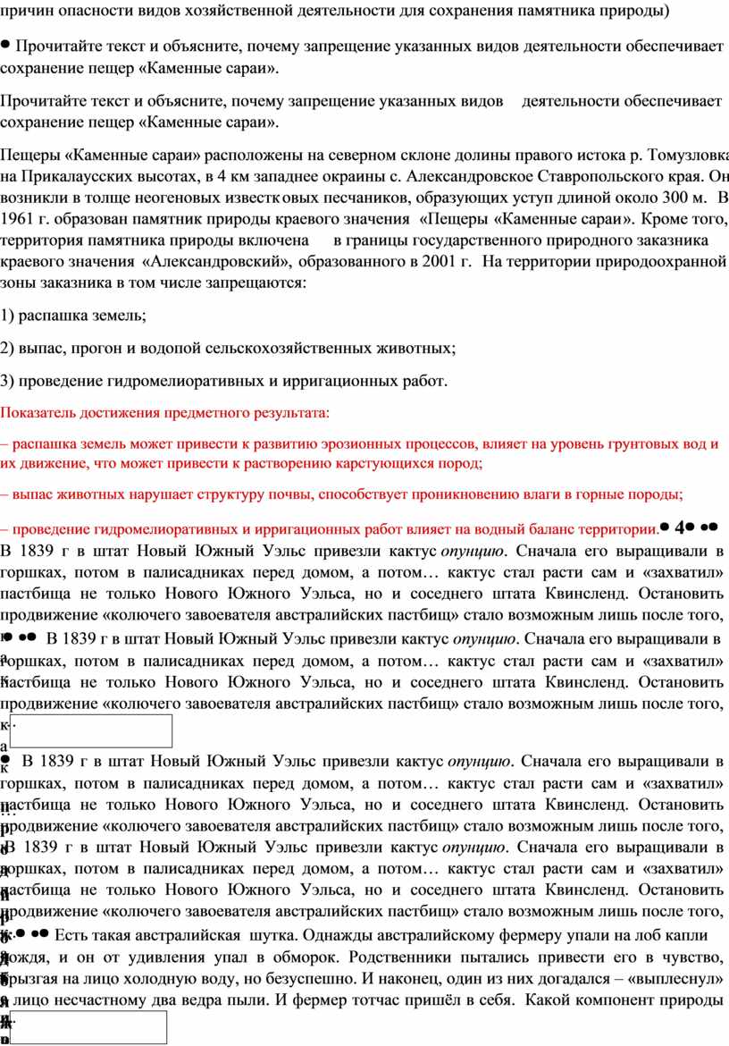 применение знаний для решения проблемы на основе анализа информации (объяснение причин опасности видов хозяйственной деятельности для сохранения памятника природы)