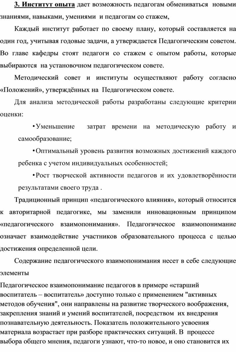 3. Институт опыта дает возможность педагогам обмениваться новыми знаниями, навыками, умениями и педагогам со стажем,