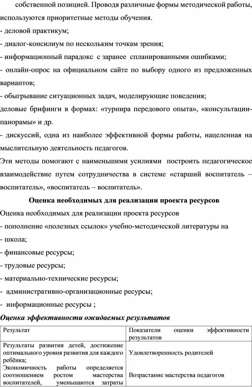 Эти методы помогают с наименьшими усилиями построить педагогическое взаимодействие путем сотрудничества в системе «старший воспитатель – воспитатель», «воспитатель – воспитатель».