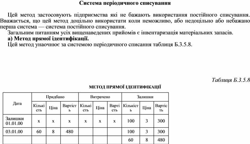 Цей метод унаочнює за системою періодичного списання таблиця Б.3.5.8.
