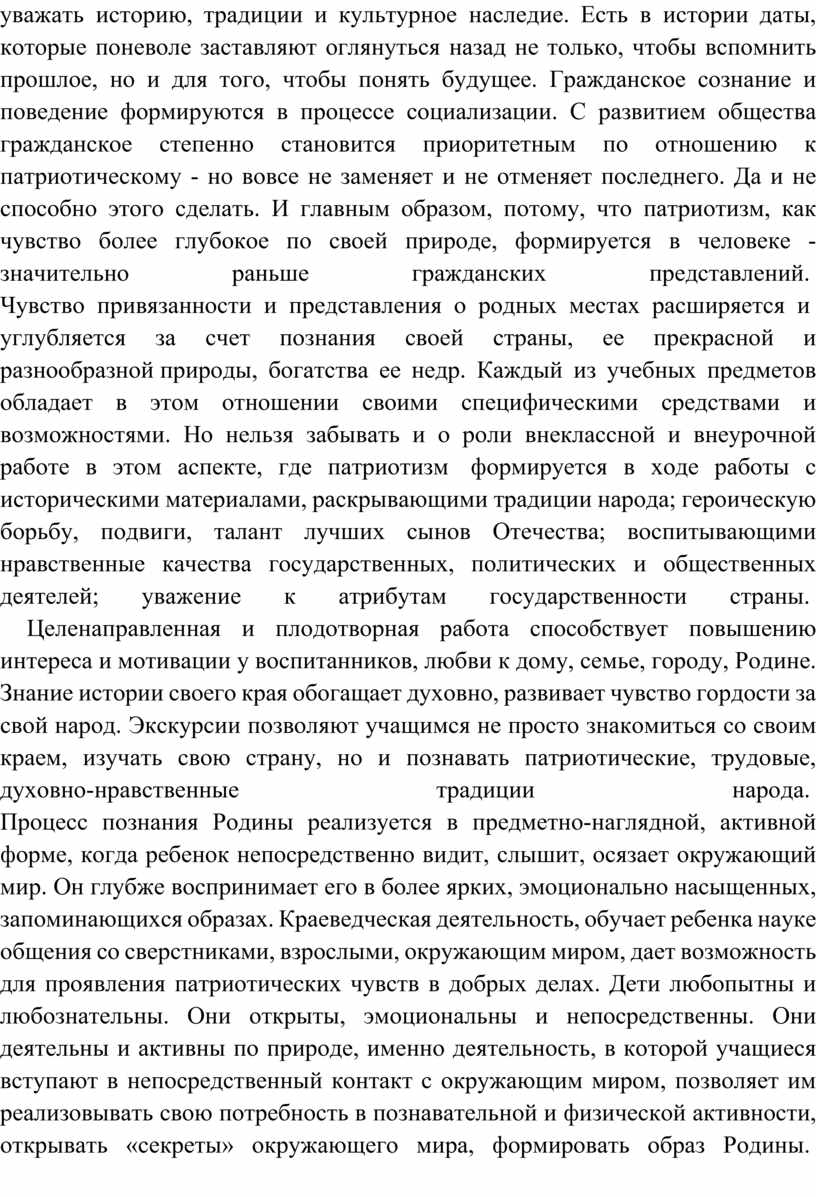 городу, ученическому коллективу, местным традициям и истории. Без чувства Малой
