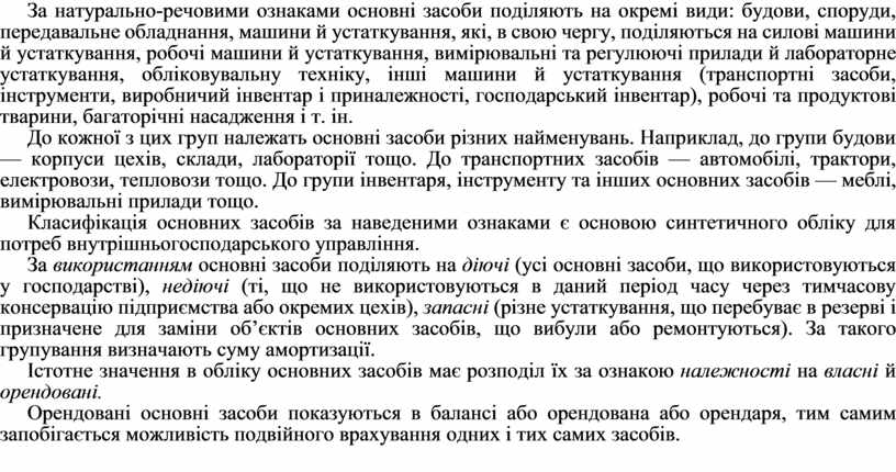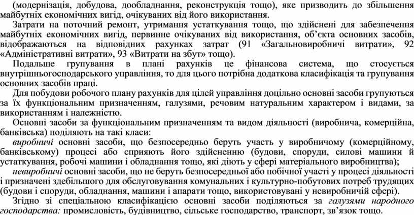 Подальше групування в плані рахунків це фінансова система, що стосується внутрішньогосподарського управління, то для цього потрібна додаткова класифікація та групування основних засобів праці.