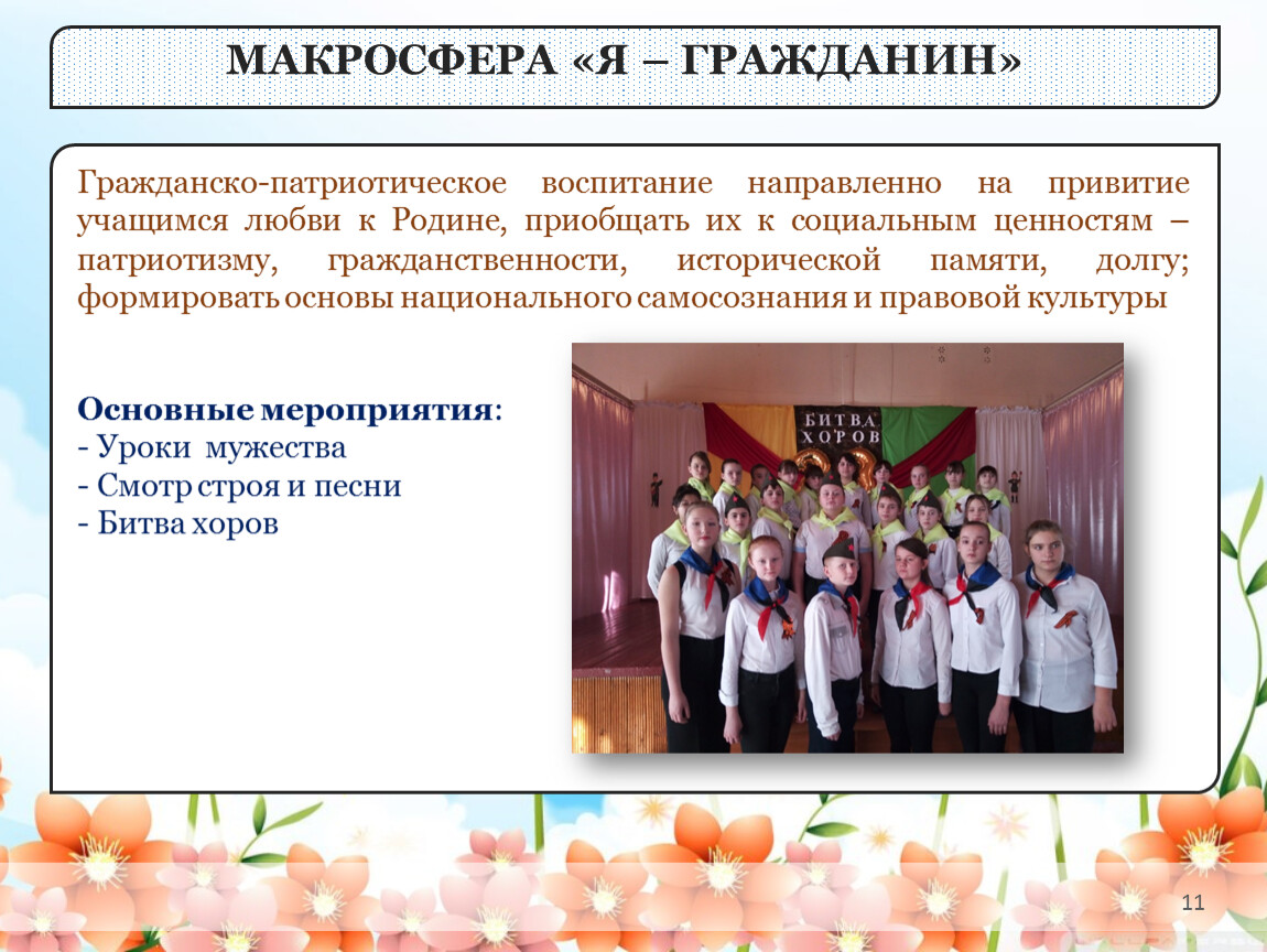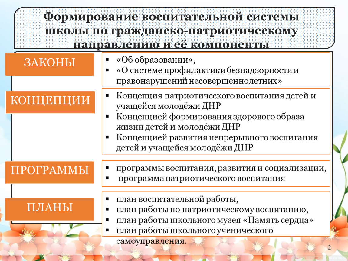 Формирование воспитательной системы школы по гражданско-патриотическому направлению и её компоненты