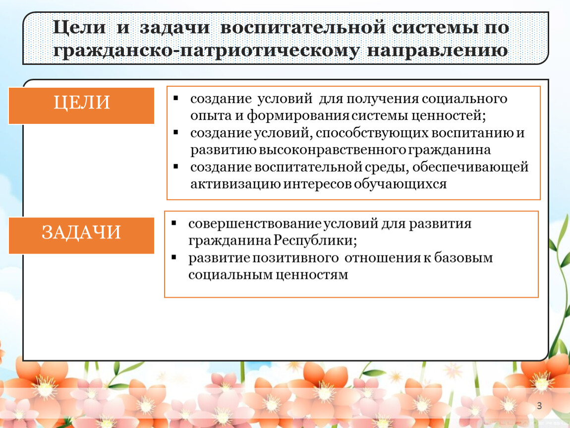 Цели и задачи воспитательной системы по гражданско-патриотическому направлению