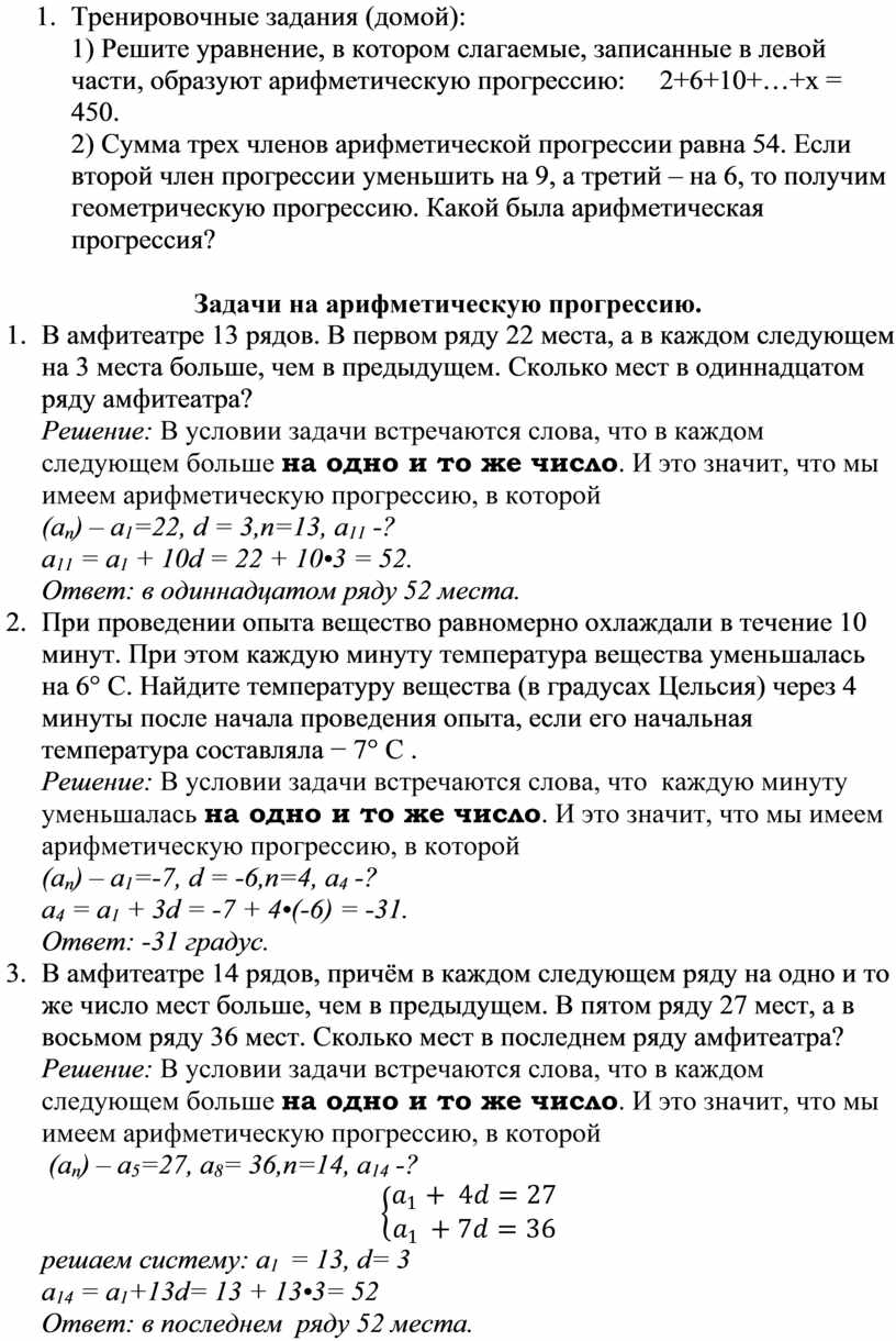 Тренировочные задачи на арифметическую и геометрическую прогрессии.