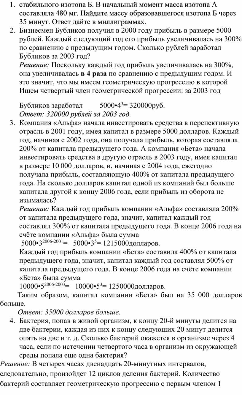 Каждый год прибыль компании «Бета» составила 400% от капитала предыдущего года, значит, капитал каждый год составлял 500% от капитала предыдущего года. В конце 2006 года на счёте компании «Бета» была сумма