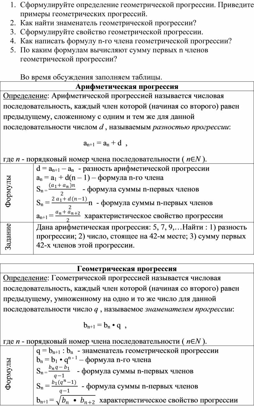 Теория по прогрессиям.