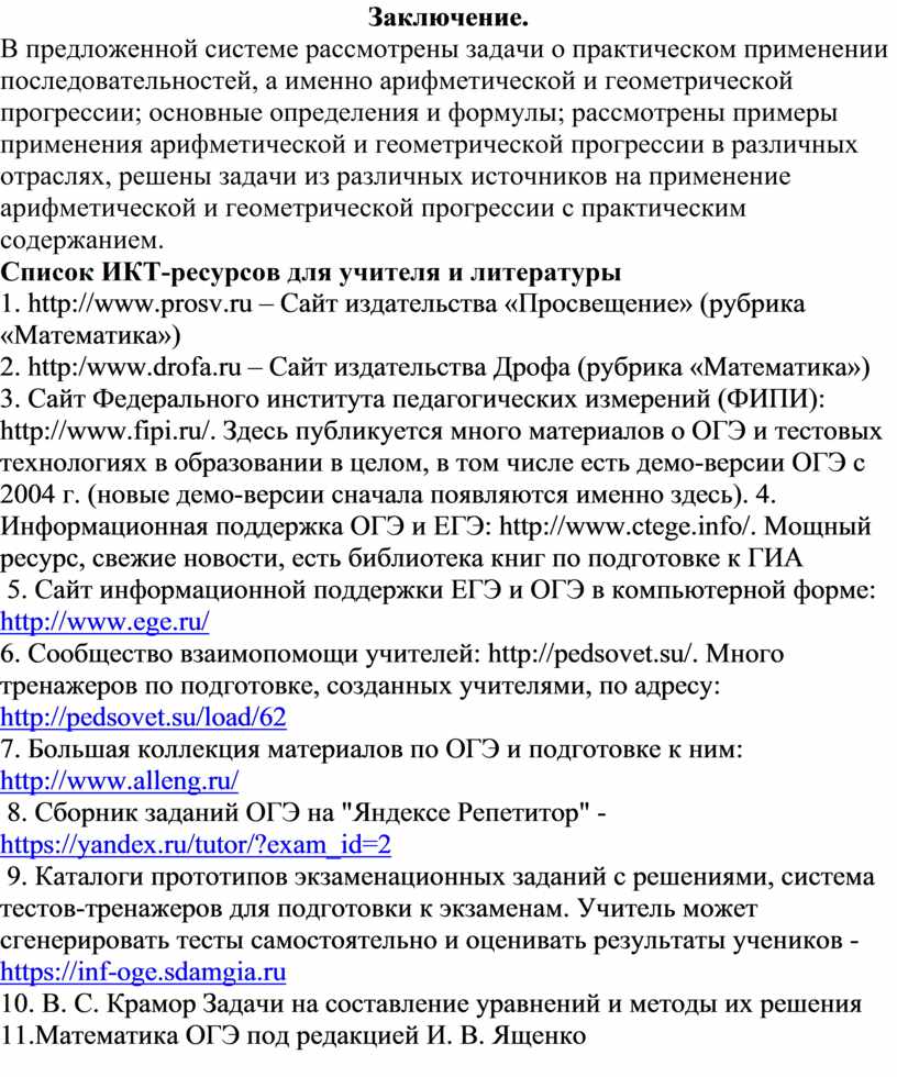 Список ИКТ-ресурсов для учителя и литературы