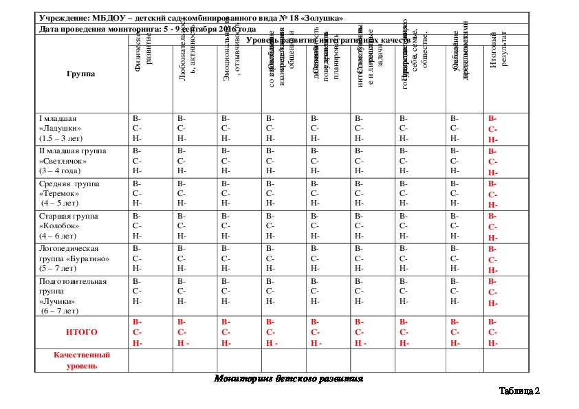 Таблица 2Дата проведения мониторинга: 48 сентября 2017 года