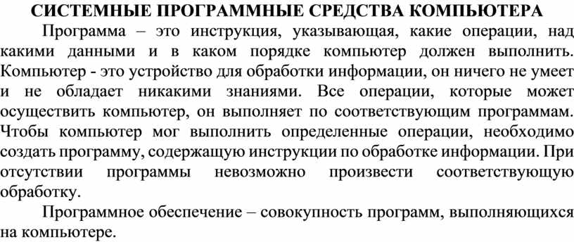 Системные программные средства компьютера