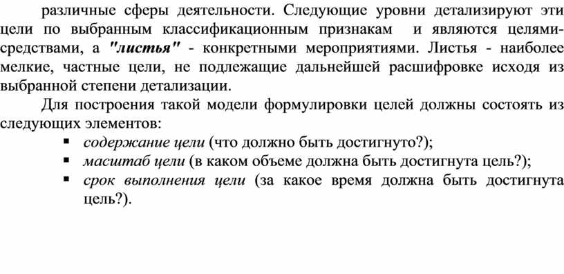 Для построения такой модели формулировки целей должны состоять из следующих элементов: