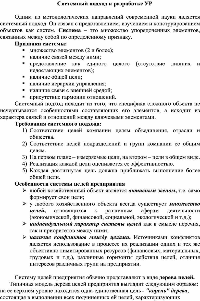 Системный подход исходит из того, что специфика сложного объекта не исчерпывается особенностями составляющих его элементов, а исходит из характера связей и отношений между ключевыми элементами.