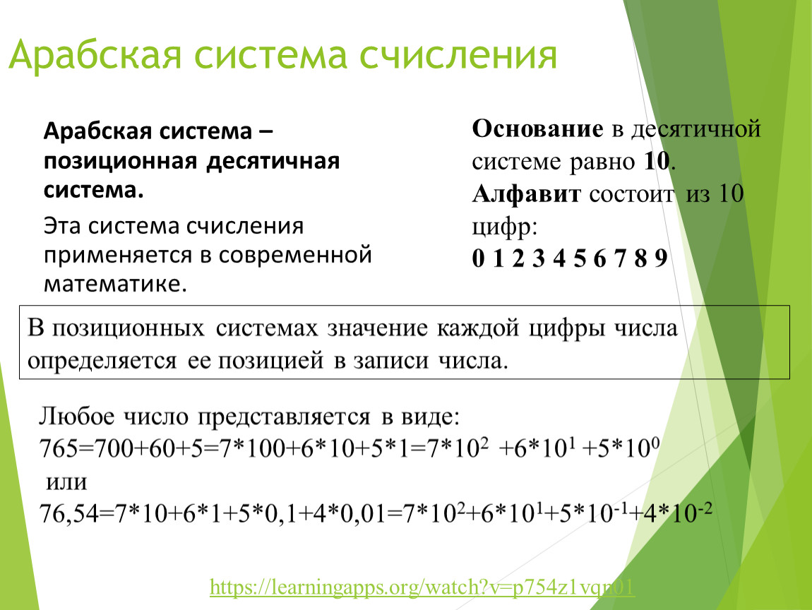 В позиционных системах значение каждой цифры числа определяется ее позицией в записи числа.