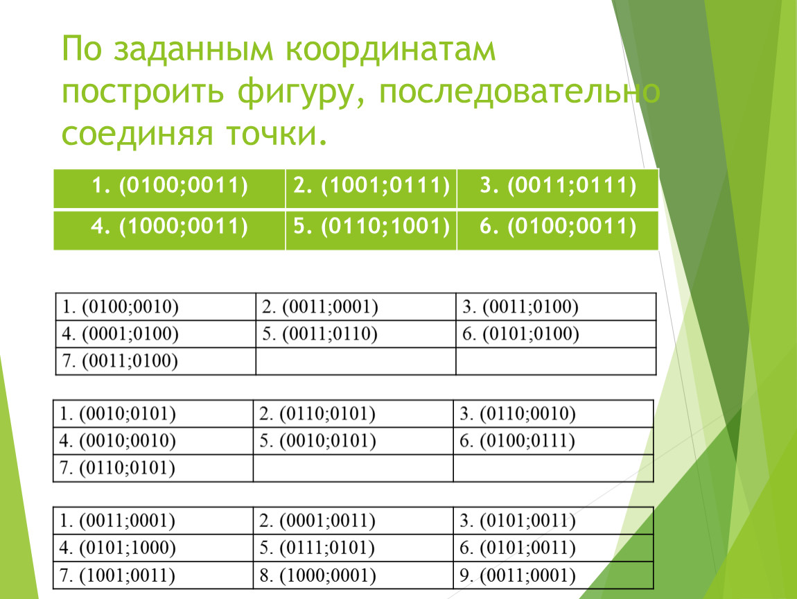 По заданным координатам построить фигуру, последовательно соединяя точки.