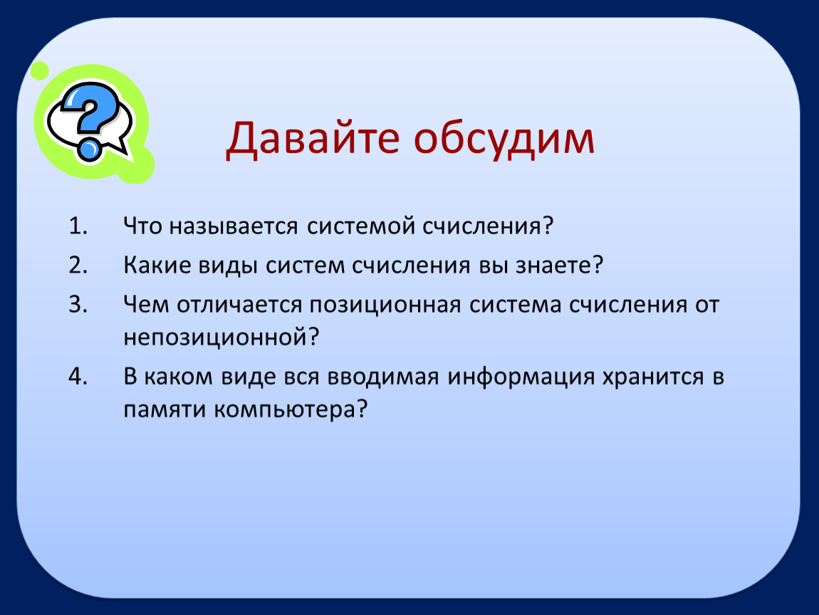 Б. системы счисления, в которых каждой цифре соответствует величина, не зависящая от её места в записи числа.