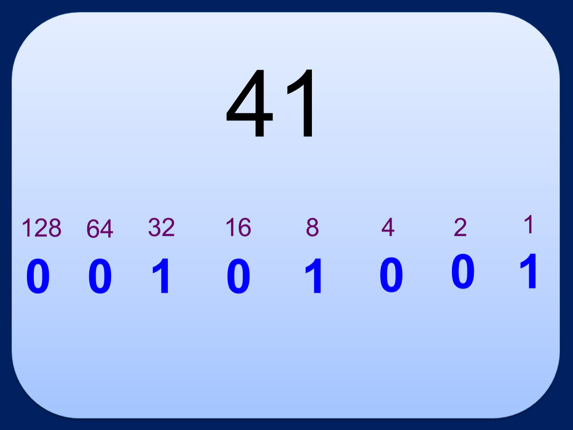 128 | 64 | 32 | 16 | 8 | 4 | 2 | 1 |