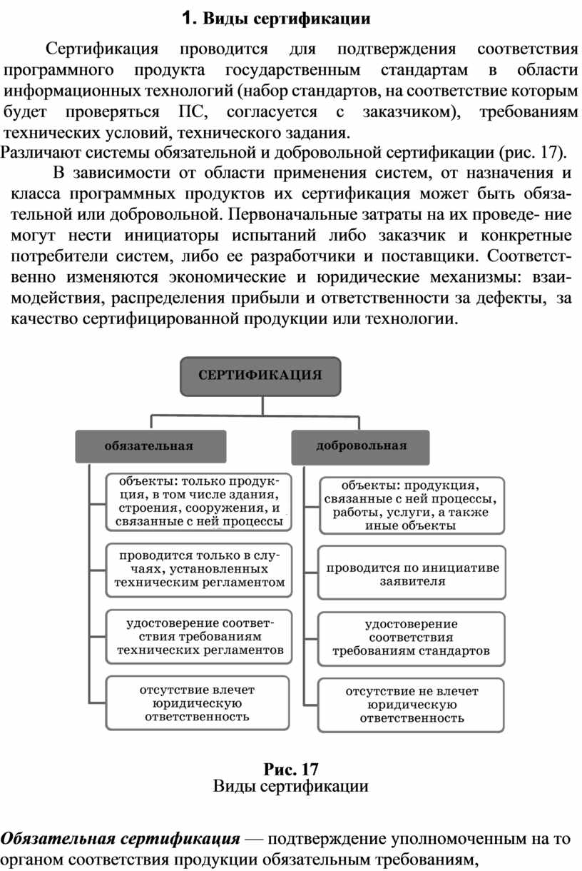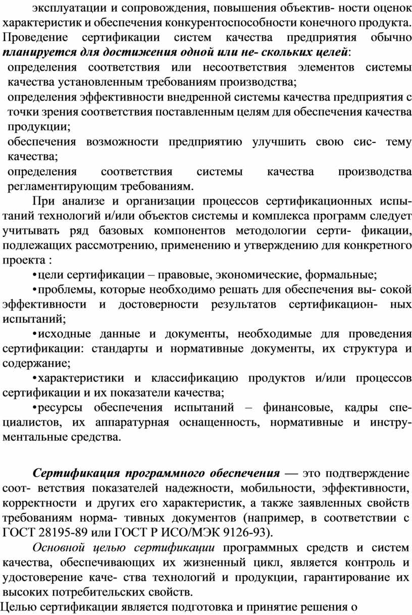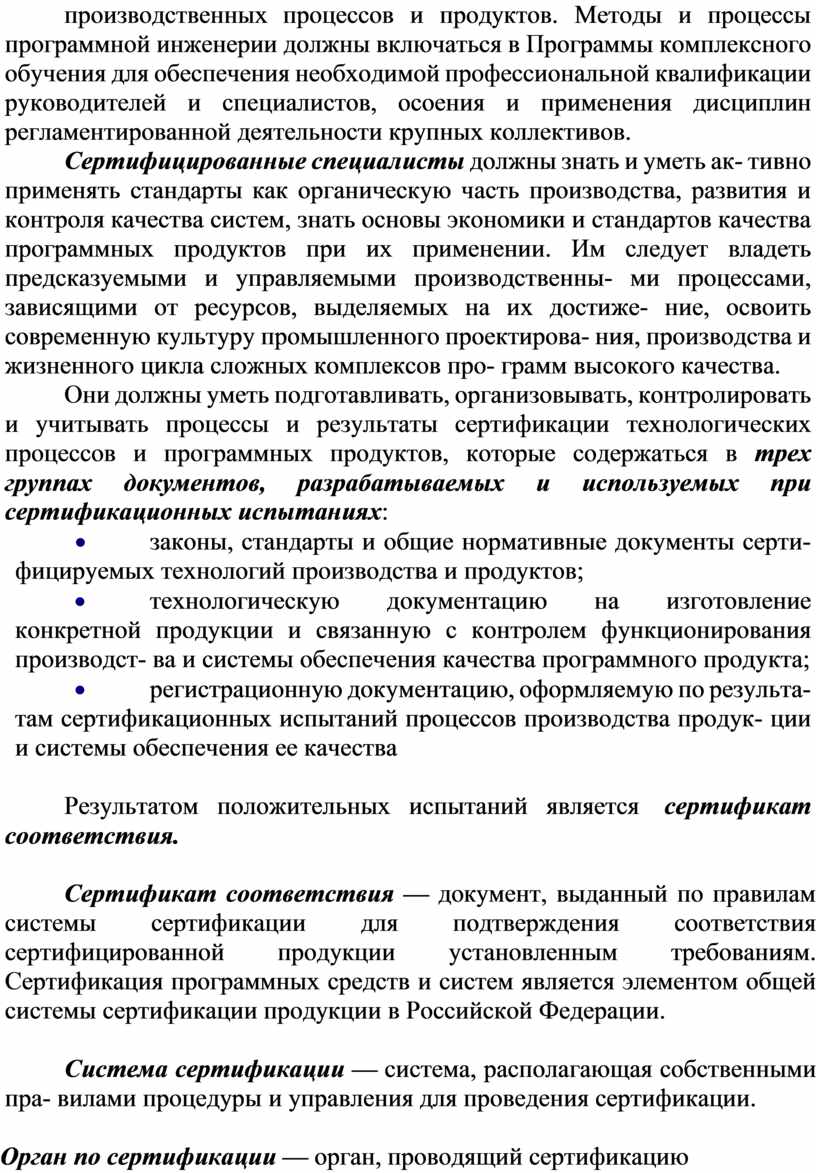 Кроме сертификации технологических процессов и готовых программных продуктов для эффективного их производства и приме- нения, важное значение имеет сертификация квалификации спе- циалистов, реализующих эти процессы.