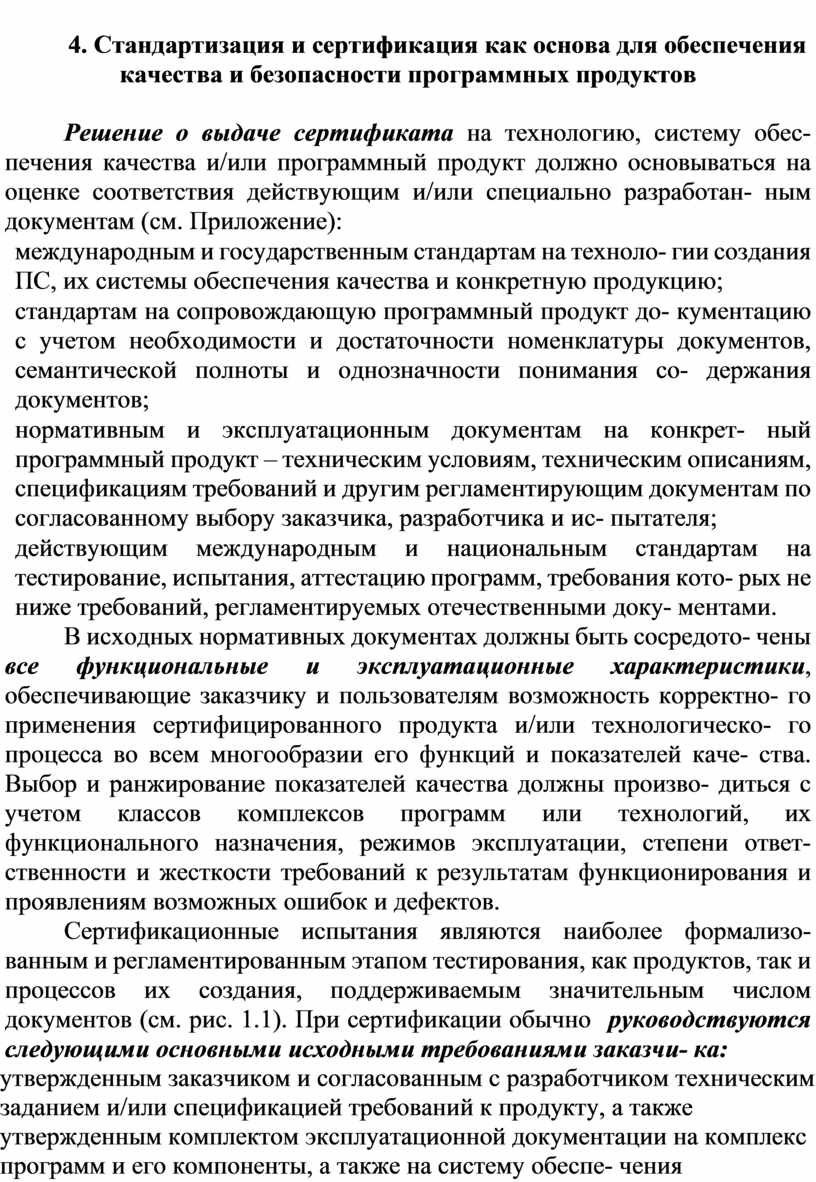 - стандартизация и сертификация как основа для обеспечения ка- чества и безопасности программных продуктов: