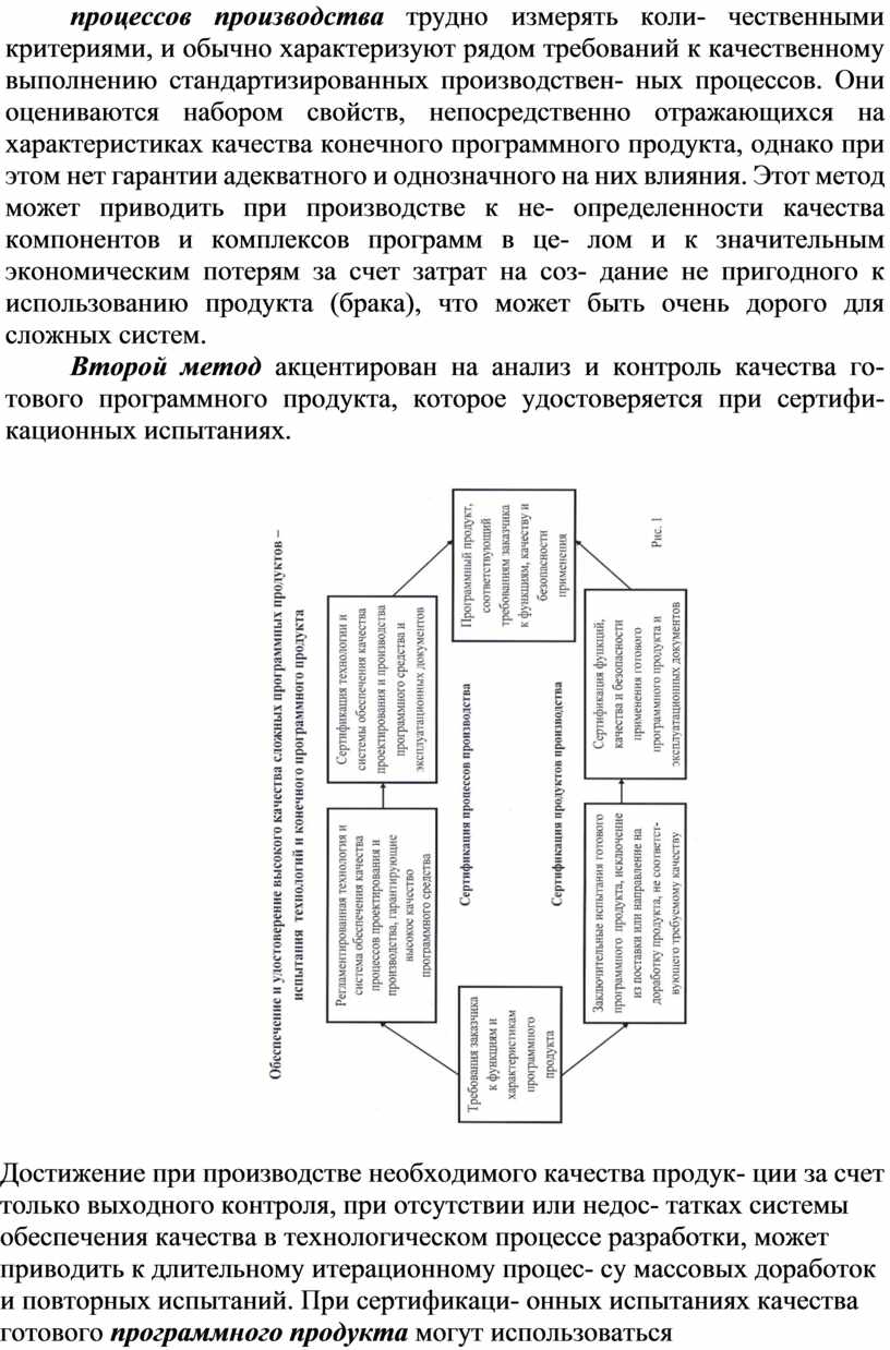 Второй метод акцентирован на анализ и контроль качества го- тового программного продукта, которое удостоверяется при сертифи- кационных испытаниях.