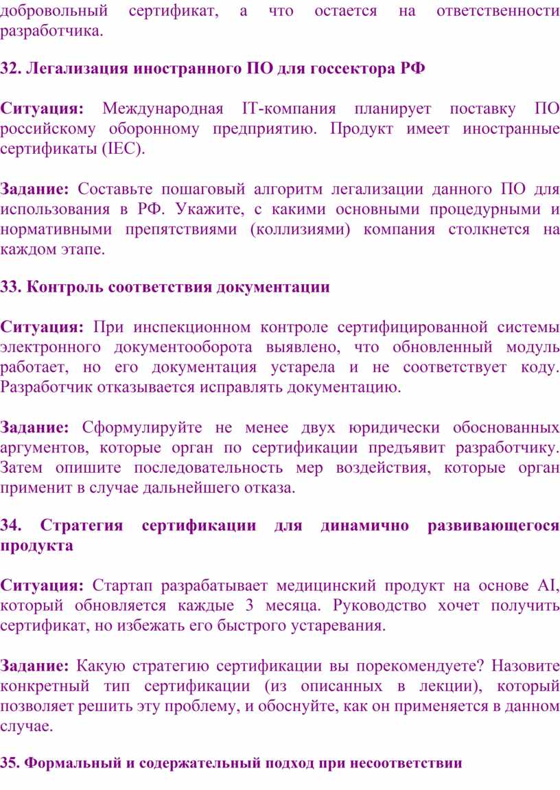Задание: Опишите формальный (регламентированный) и содержательный (экспертный) подходы органа по сертификации к данной ситуации. Укажите, какой документ является ключевым для принятия формального решения.