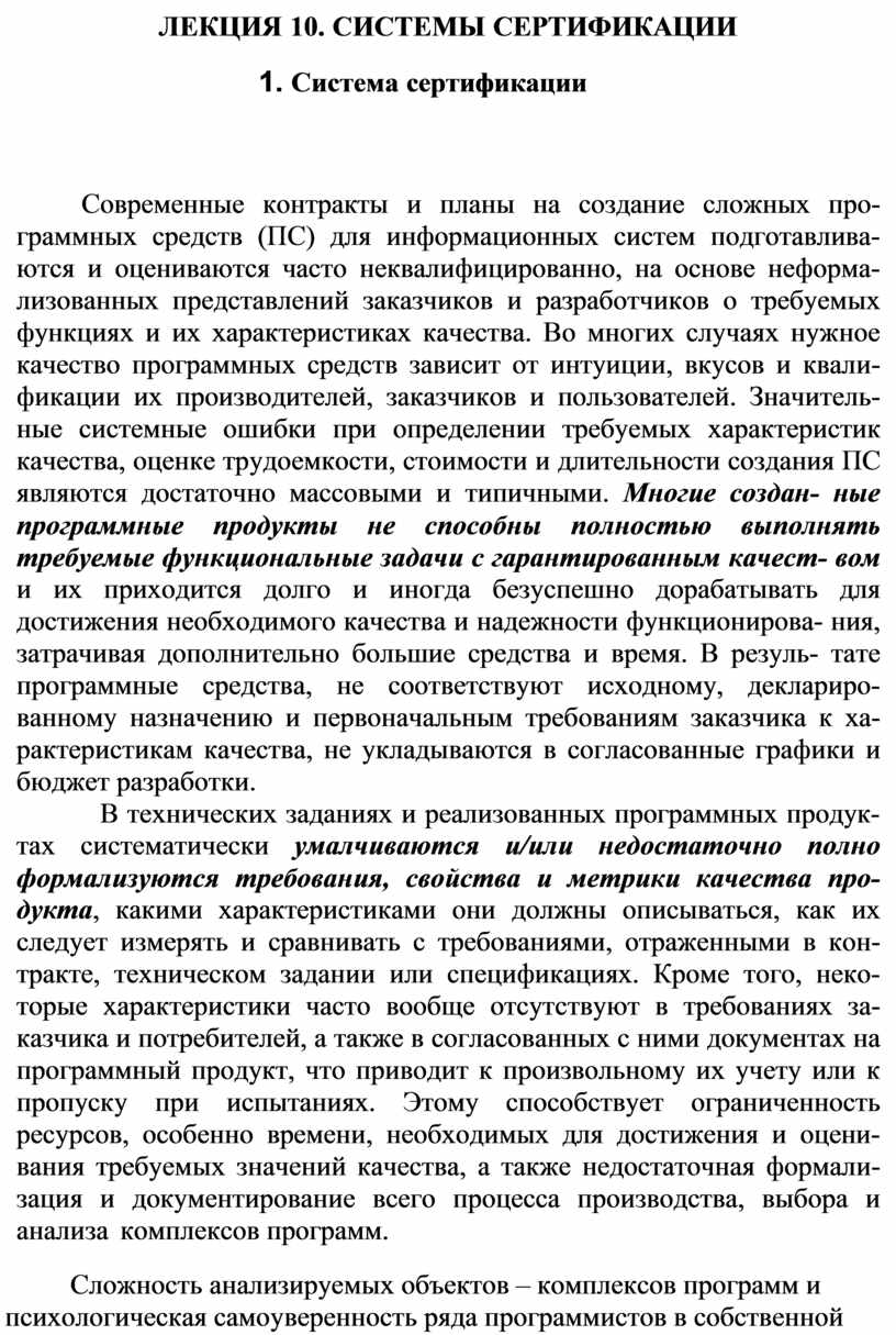 ЛЕКЦИЯ 10. СИСТЕМЫ СЕРТИФИКАЦИИ
