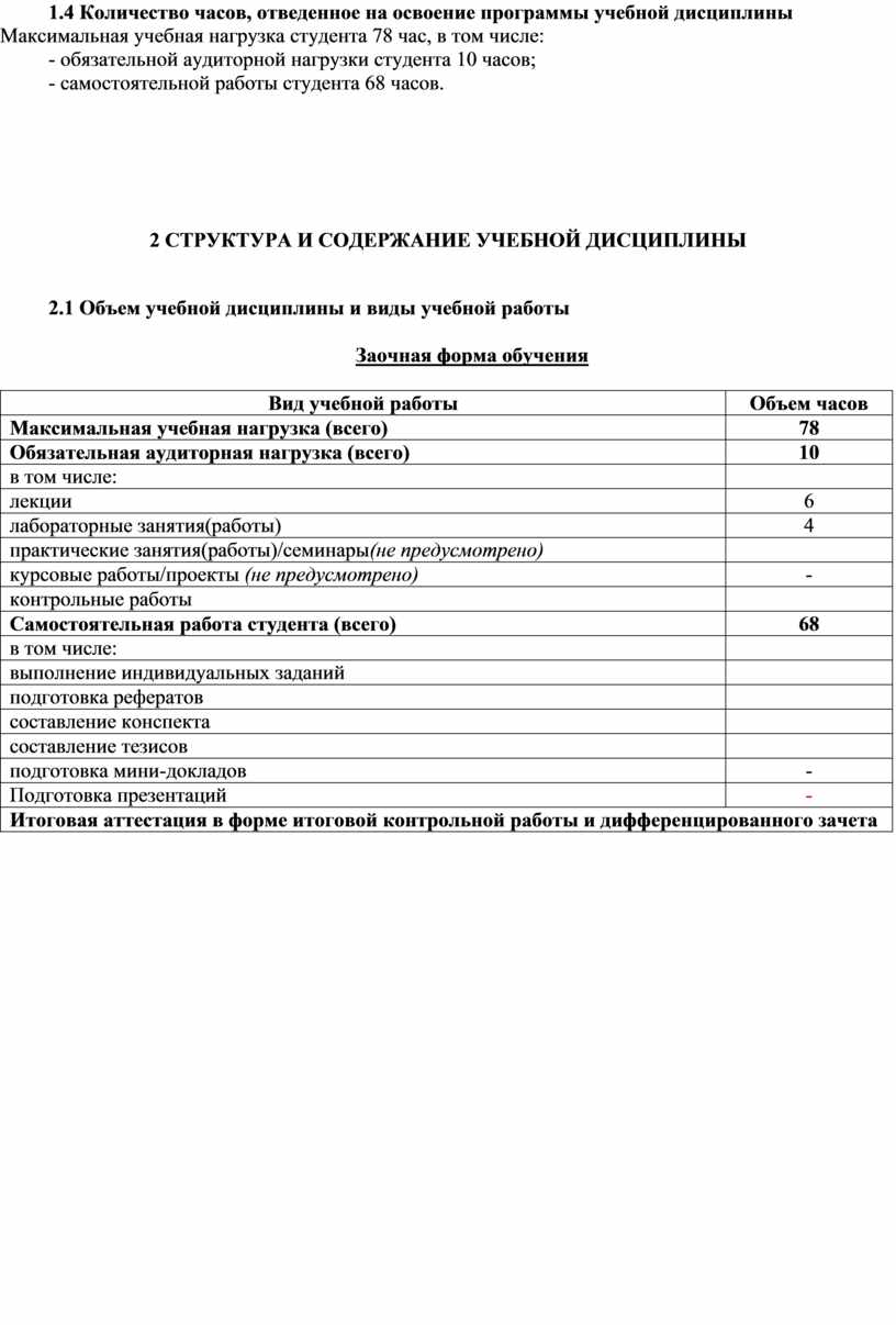 2 СТРУКТУРА И СОДЕРЖАНИЕ УЧЕБНОЙ ДИСЦИПЛИНЫ