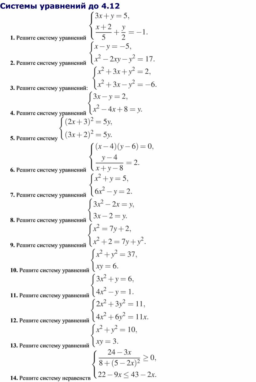 Системы уравнений до 4.12